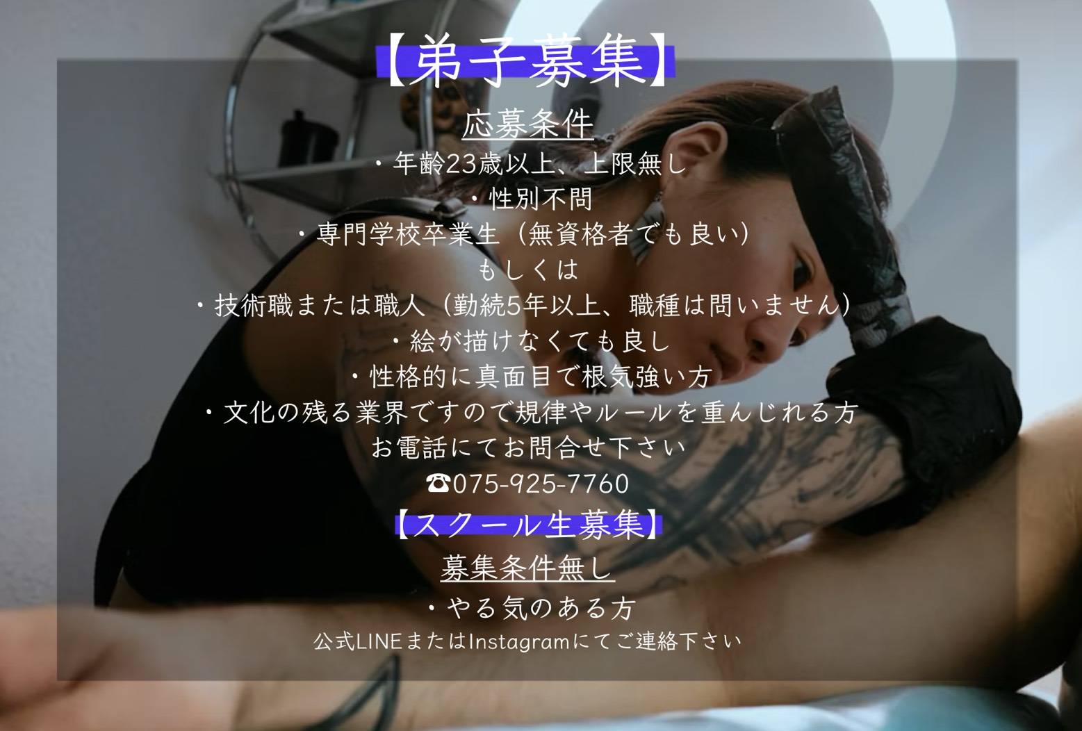 弟子希望者は、ホームページ下記の電話番号より